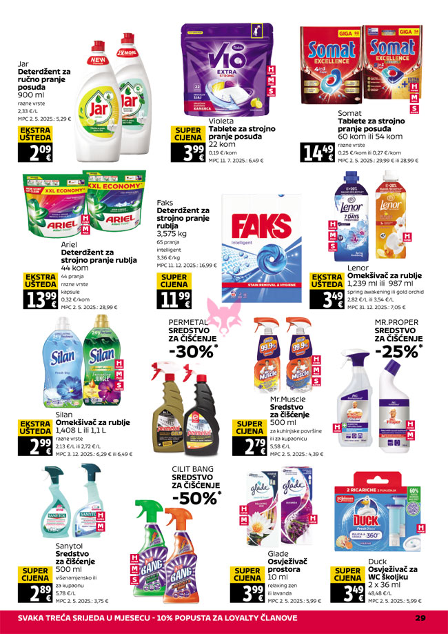 Hrana i piće, Kozmetika i nega, Kućna hemija, Odeća i obuća, Ostalo za kuću i stan, Sve za bebe, Sve za kućne ljubimce, Sve za slavlja i praznike