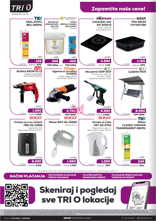 14.02.2026.Alati i mašine, Audio, foto i video uređaji, Bela tehnika, Klima uređaji, Mali kućni aparati, Ostalo za kuću i stan, Rasveta, Sve za baštu i dvorište, Sve za gradnju i održavanje, Sve za grejanje, Sve za igru, Sve za zimu