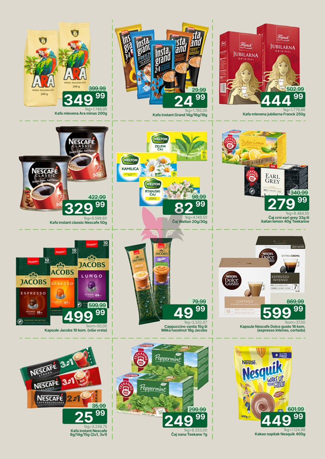 Svi katalozi i cene objavljeni na Lisica.RS Akcijskim katalozima su informativni tako da pre kupovine obavezno proverite ponudu na licu mesta. Pošto trgovci mogu bez najave da izvrše izmenu već objavljenih akcijskih kataloga, Lisica.RS Akcijski katalozi ne može biti odgovoran za važnost i tačnost istih. Lisica.RS Akcijski katalozi ne vrši prodaju proizvoda označenih na akcijskim katalozima.