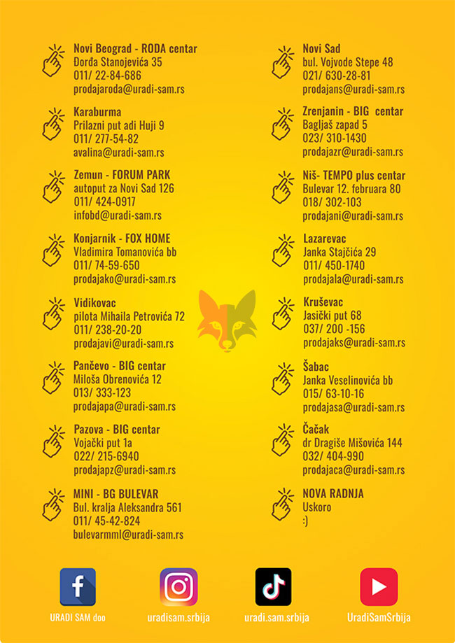 Svi katalozi i cene objavljeni na Lisica.RS Akcijskim katalozima su informativni tako da pre kupovine obavezno proverite ponudu na licu mesta. Pošto trgovci mogu bez najave da izvrše izmenu već objavljenih akcijskih kataloga, Lisica.RS Akcijski katalozi ne može biti odgovoran za važnost i tačnost istih. Lisica.RS Akcijski katalozi ne vrši prodaju proizvoda označenih na akcijskim katalozima.