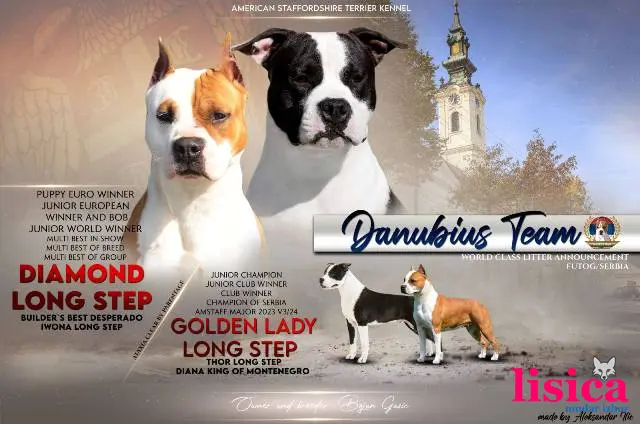 Odgajivačnica Danubius Team predstavlja vrhunsko leglo AST-a. U ponudi imamo 3 mužjaka i jednu ženku. Primili prvu vakcinu, više puta očišćeni od parazita. Otac štenaca mladi evropski i mladi svetski šampion Diamond Long Step. Uz štence ide veterinarski karton i radna knjižica. Štenci su oštenjeni 17.12.2025. U slikama i slika oba roditelja sa svim informacijama o njima i titulama.