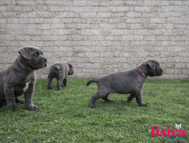 Štenci Cane Corso, oštenjeni 02.12.2025, slobodni za rezervaciju, od vrhunskih roditelja testirani na kukove i laktove HD-A, ED-O. Dostupno tri mužjaka formentino i 1 sivi sa tigrinom, dve ženke - jedna siva, druga siva sa tigrinom. Štenci su očišceni od parazita, i primili dve vakcine.