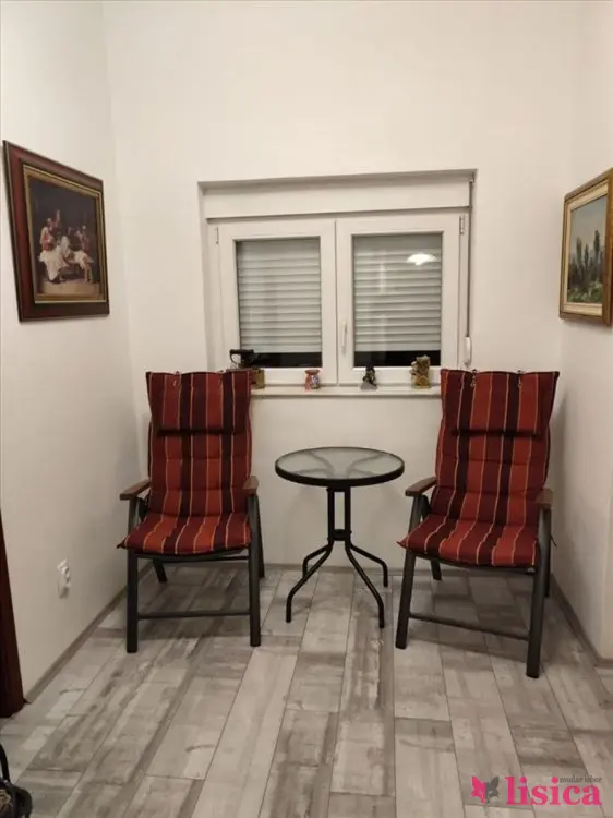U centru Zemuna kuća sa dva stana, u prizemlju kuće salonac od 75m2 trosoban, plafon visine 3m, kompletno nov nameštaj i tehnika, PVC, debljina zidova 30cm puna cigla plus spoljnja izolacija