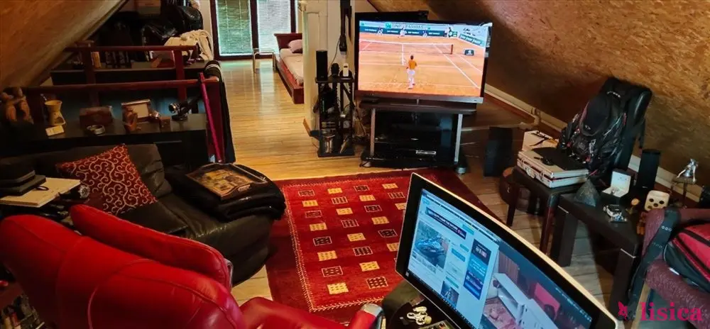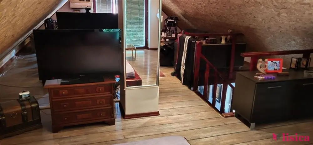 Drugi stan na spratu salonac od 130m2 trosoban, plafon visine 3m sa prelepom drvenom tavanicom... masivne grede i daske plus potkrovlje i garderober u zadnje dvorište vode stepenice.