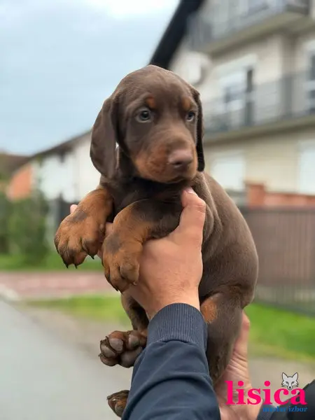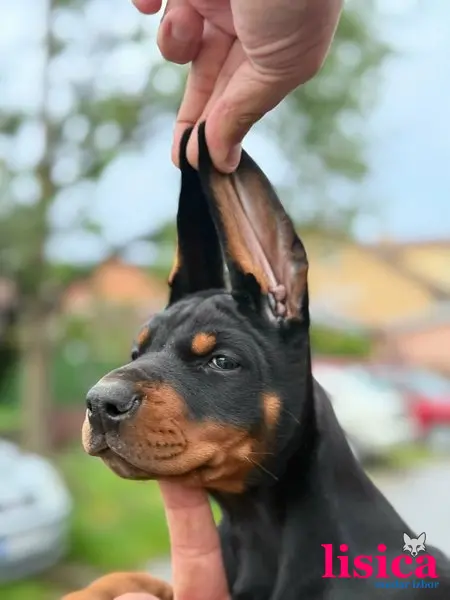 Dostupni doberman štenci oba pola u crnoj i braon boji. Podizani u kućnim uslovima sa puno ljubavi i pažnje uz stalni nadzor veterinara. Naviknuti na kućne uslove, veoma veseli i razigrani. Redovno prema uzrastu više puta čišćeni od unutrašnjih i spoljašnjih parazita i vakcinisani. Kupirani su. Poseduju sve potrebne papire. Pri preuzimanju šteneta radi se klinički pregled kod veterinara radi naše i vaše sigurnosti da je štene zdravo i pravo.