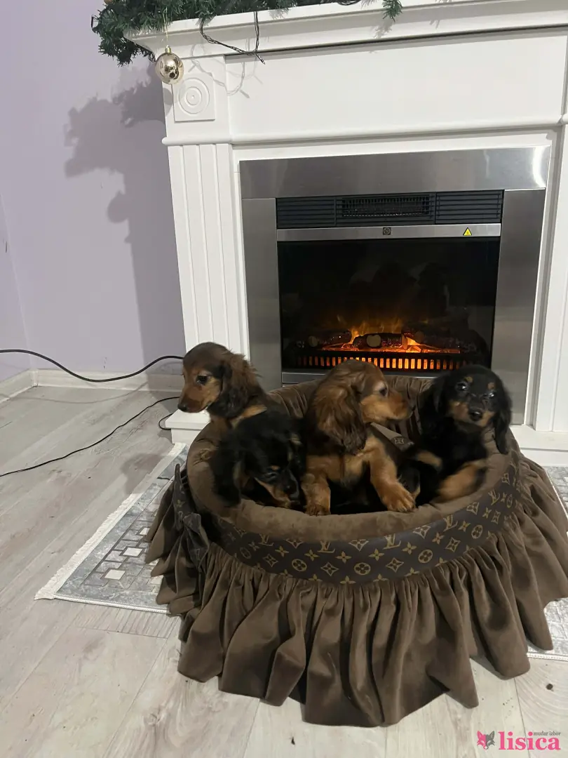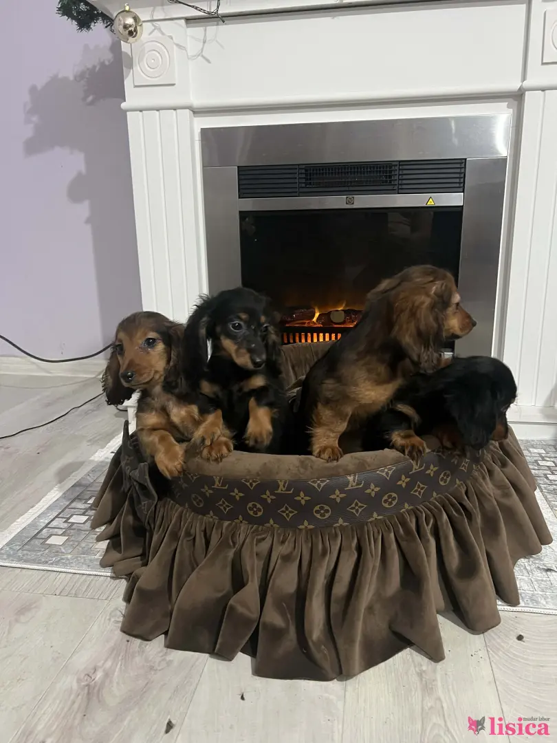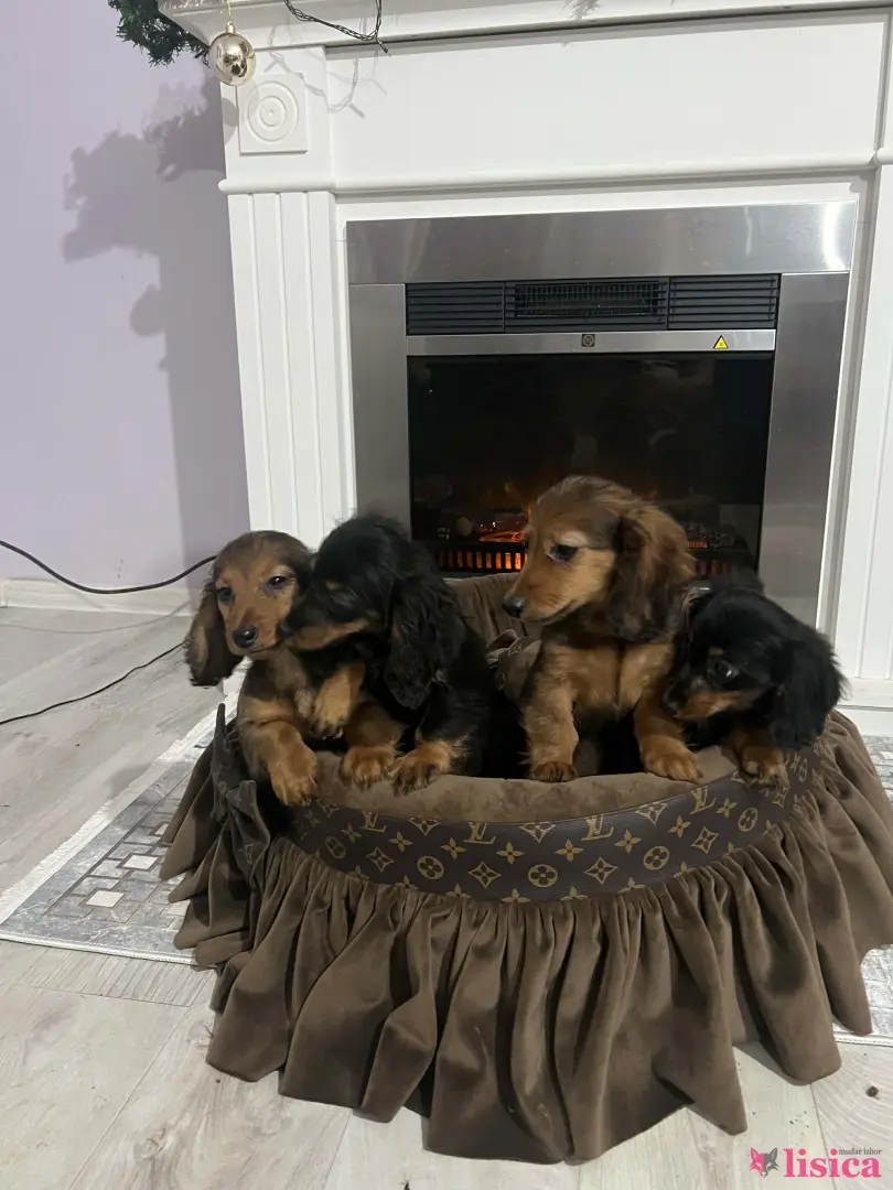Dugodlaki patuljasti jazavičari štenci, stari devet nedelja, 3 x očišćeni od parazita, dva puta vakcinisani. Uz svako štene ide čip, pasoš, klinički pregled kod veterinara, početni paket granula i rod.