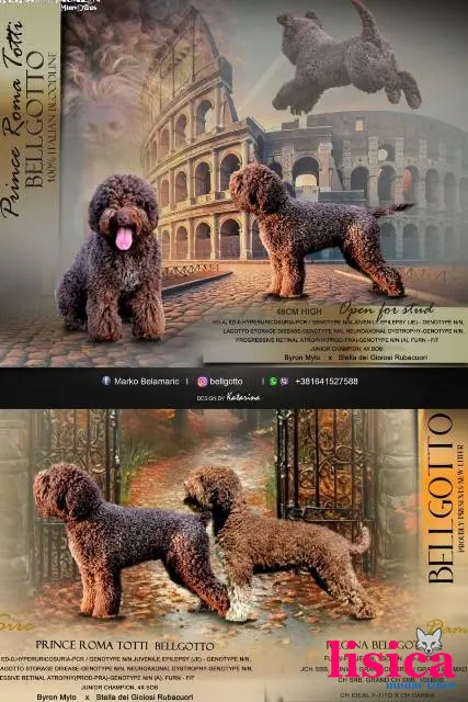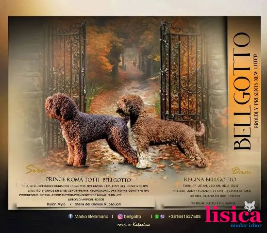 Odgajivačnica "Bellgotto" 7522 sa zadovoljstvom predstavlja svoje leglo štenaca Lagotto Romagnolo oštenjeni 20.08.2025. Štenci su vrhunskog porekla.