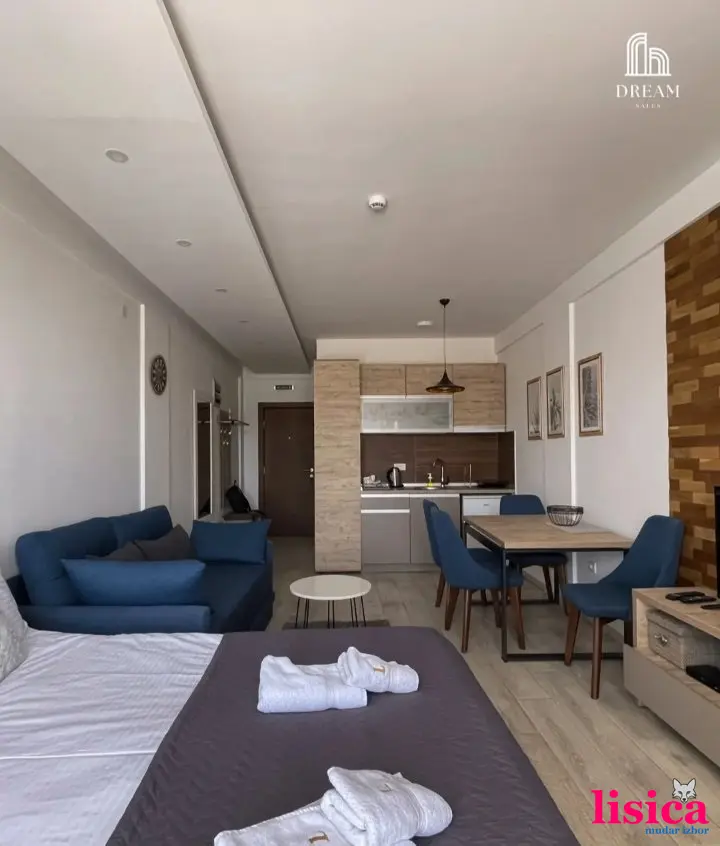 Predstavljamo vam potpuno opremljen studio apartman sa novim nameštajem, površine 28m², kapaciteta do 4 osobe, smešten na drugom spratu renomiranog Milmari Resorta.