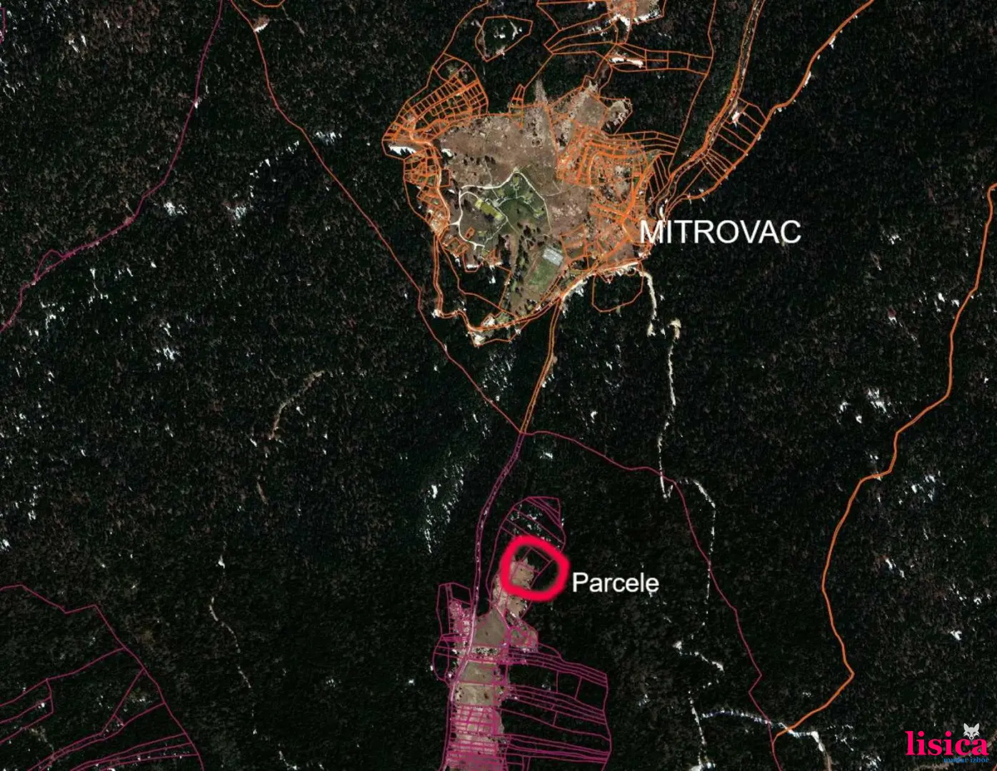 Plac se nalazi na lokaciji pod nazivom Krnja jela, na oko 500 metara od Mitrovca, u pravcu ka jezeru Zaovine, i na svega 100 metara od glavnog puta. Struja i voda su dostupni.