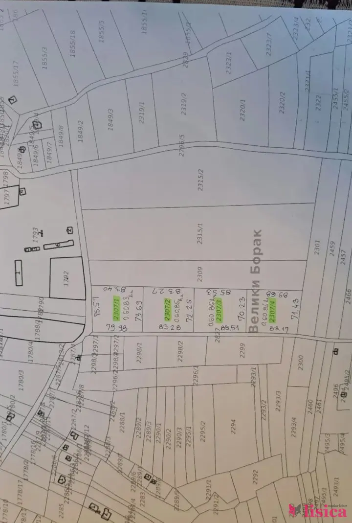 Vrlo povoljno njiva 2 hektara i 43 ari. Njiva se nalazi u mestu Veliki Borak, Barajevo. Njiva ima izlaz na asfaltirani put i na još jedan put koji nije asfaltiran ali se proteže celom dužinom njive. Pored njive ima priključak za struju i vodu. Njiva je potpuno ravna što se vidi i na slikama. Odlična je za poljoprivredno gazdinstvo. Njiva je podeljena na 4 parcele po 60.95 ari, ako neko želi da uzme celu parcelu moguće je spajanje parcela jer je vlasnik 1/1. Prikazana cena je za jednu parcelu. Zvati na telefon 0615203706.
