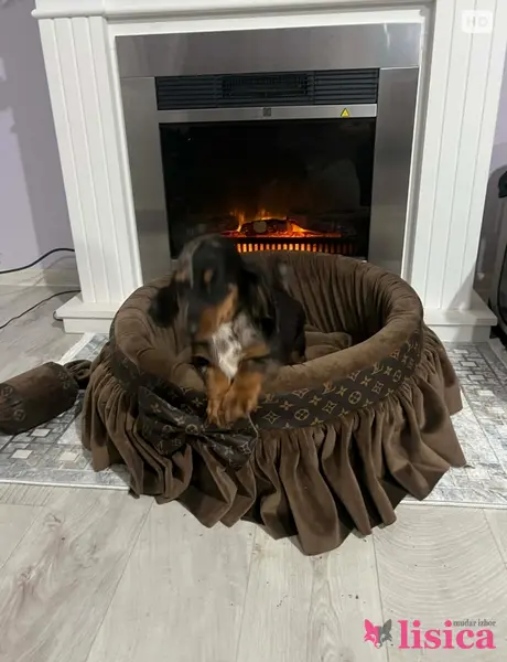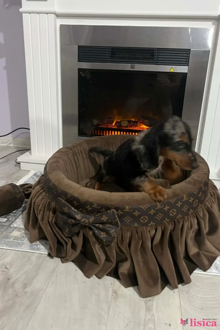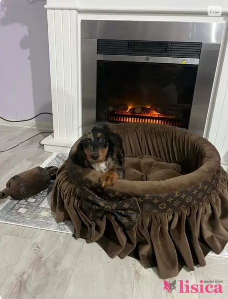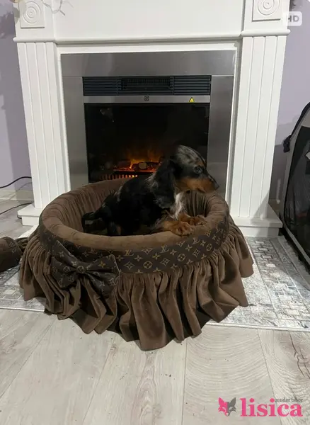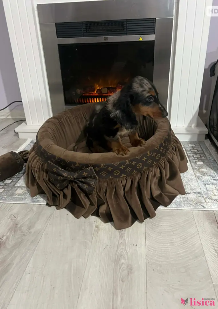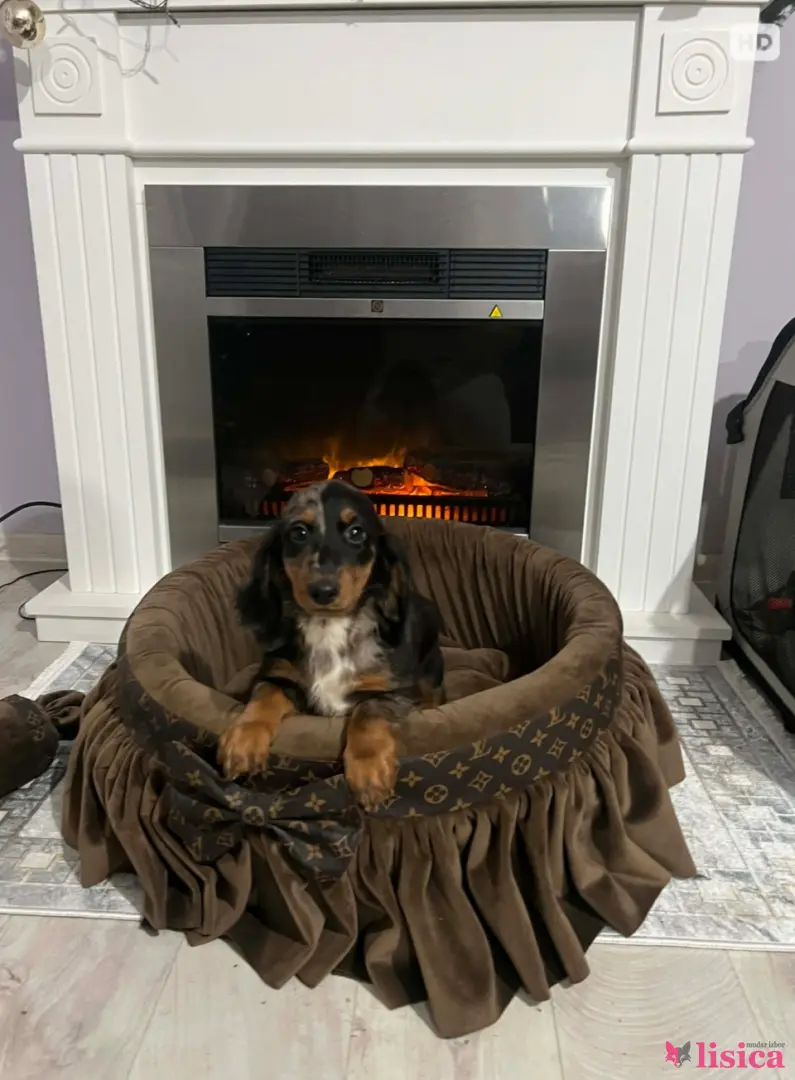 Patuljasti dugodlaki jazavičar, merle ženka stara 9 nedelja, tri puta očišćena od parazita, primila dve vakcine, izuzetnog temperamenta. Uz štene ide čip, pasoš, klinički pregled kod veterinara, početni paket granula, pedig.