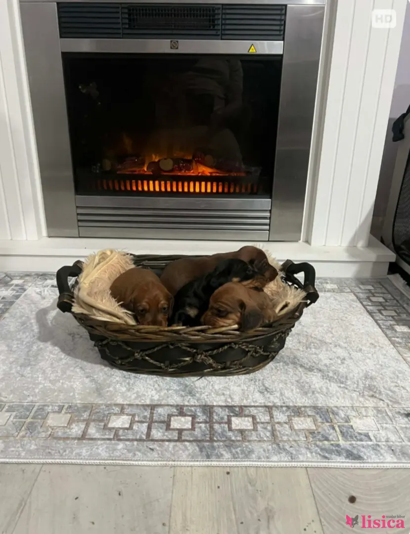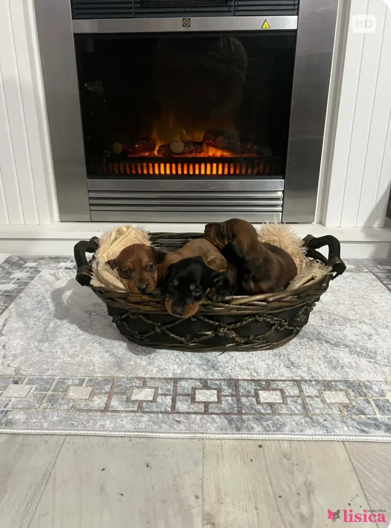 Patuljasti jazavičari kratkodlaki devet nedelja stari, tri puta očišćeni od parazita, imaju dve vakcine, uz svako štene ide klinički pregled kod veterinara, čip, pasoš i početni paket granula. Rod. se doplaćuje 50e.