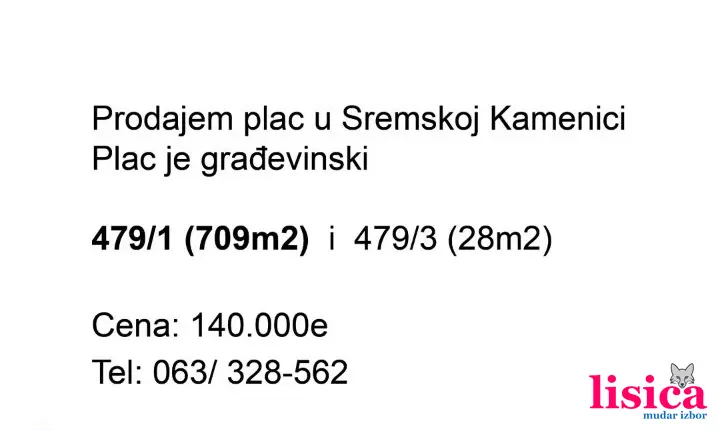 Plac je građevinski, 737m2, širina (front) cirka 15m, dužina cirka 50m, struja i voda pored placa.