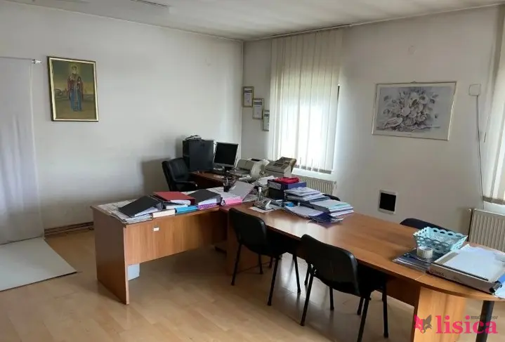Sprat: Hol sa hodnikom, stepenište, 4 kancelarije, hala, magacin, sanitarni čvor