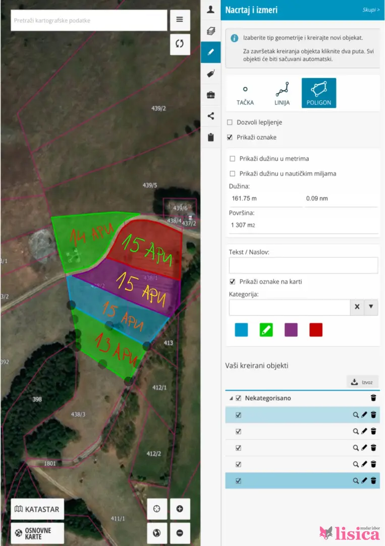 Površina: 75 ari