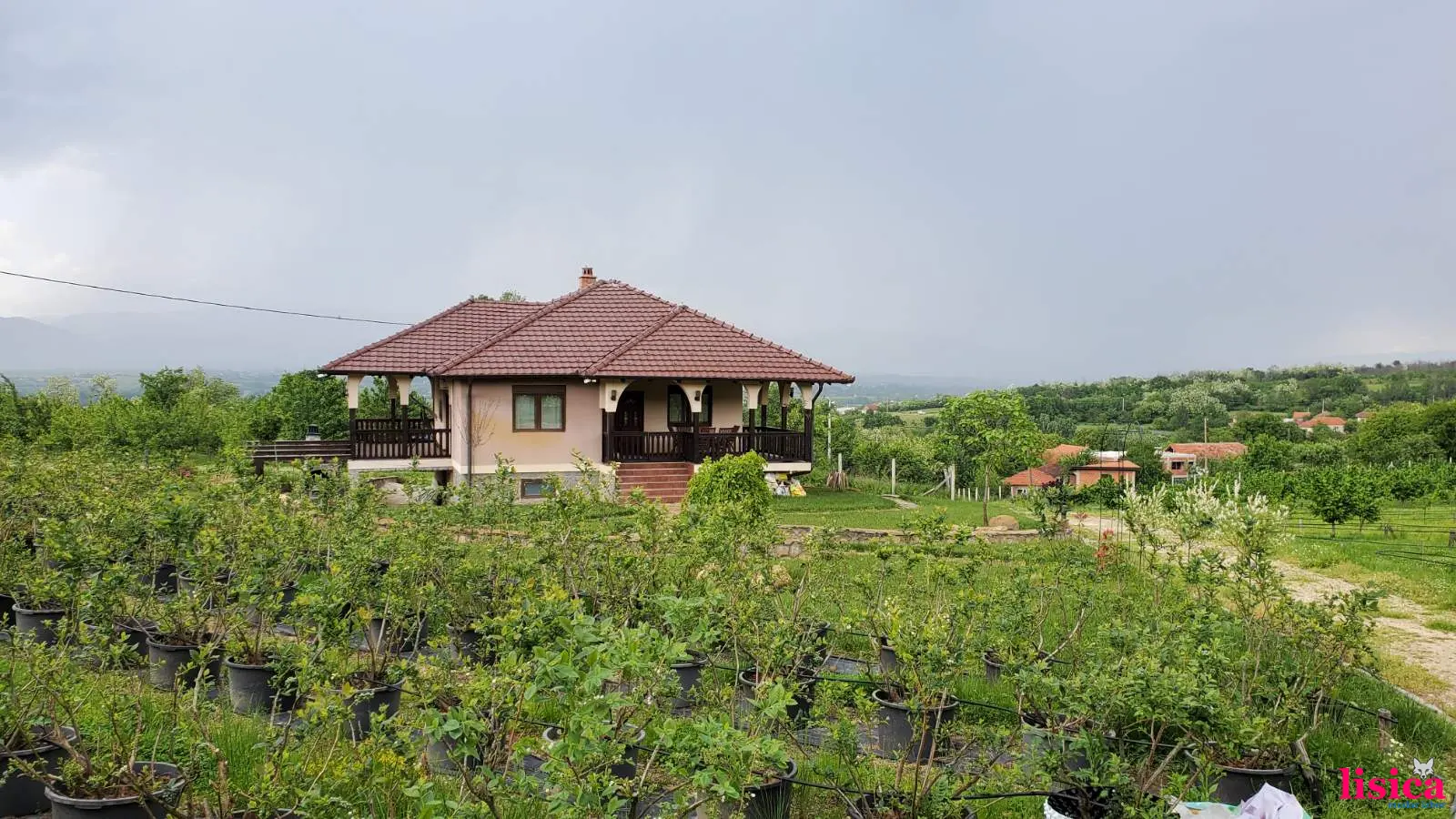 Kuća na plantaži. Prizemni - tehničko-poslovni i spratni - stambeni deo. Plantaža lešnika sa 1500 stabala, borovnice sa 400 sadnica i voćnjak sa 100 voćaka.