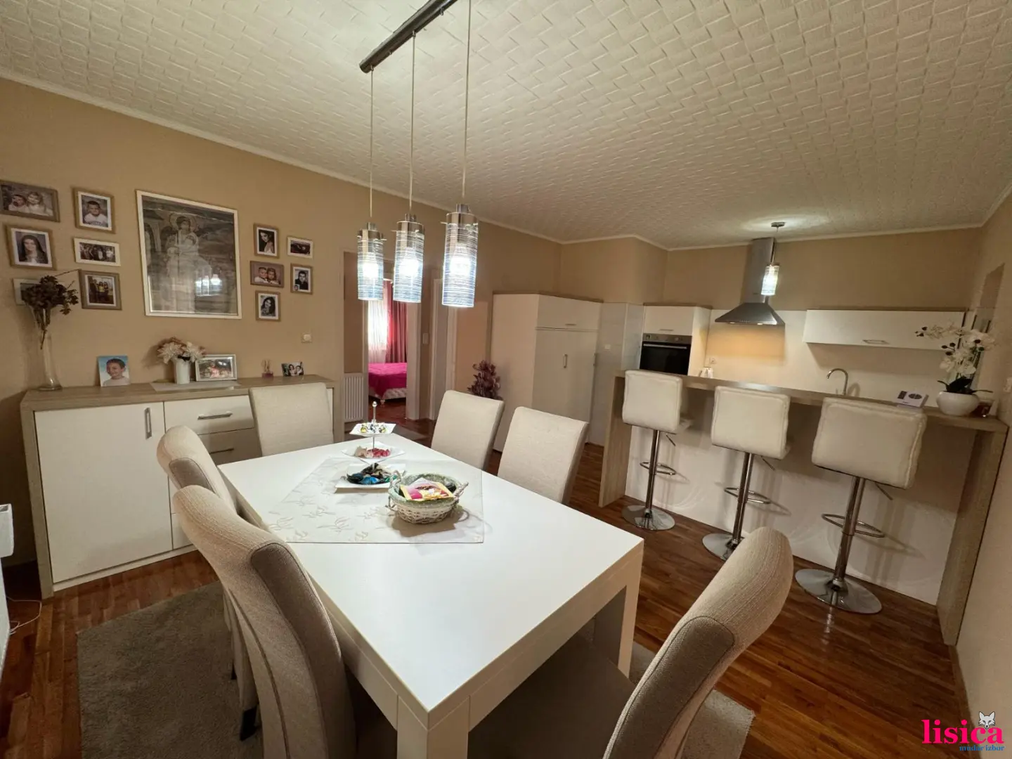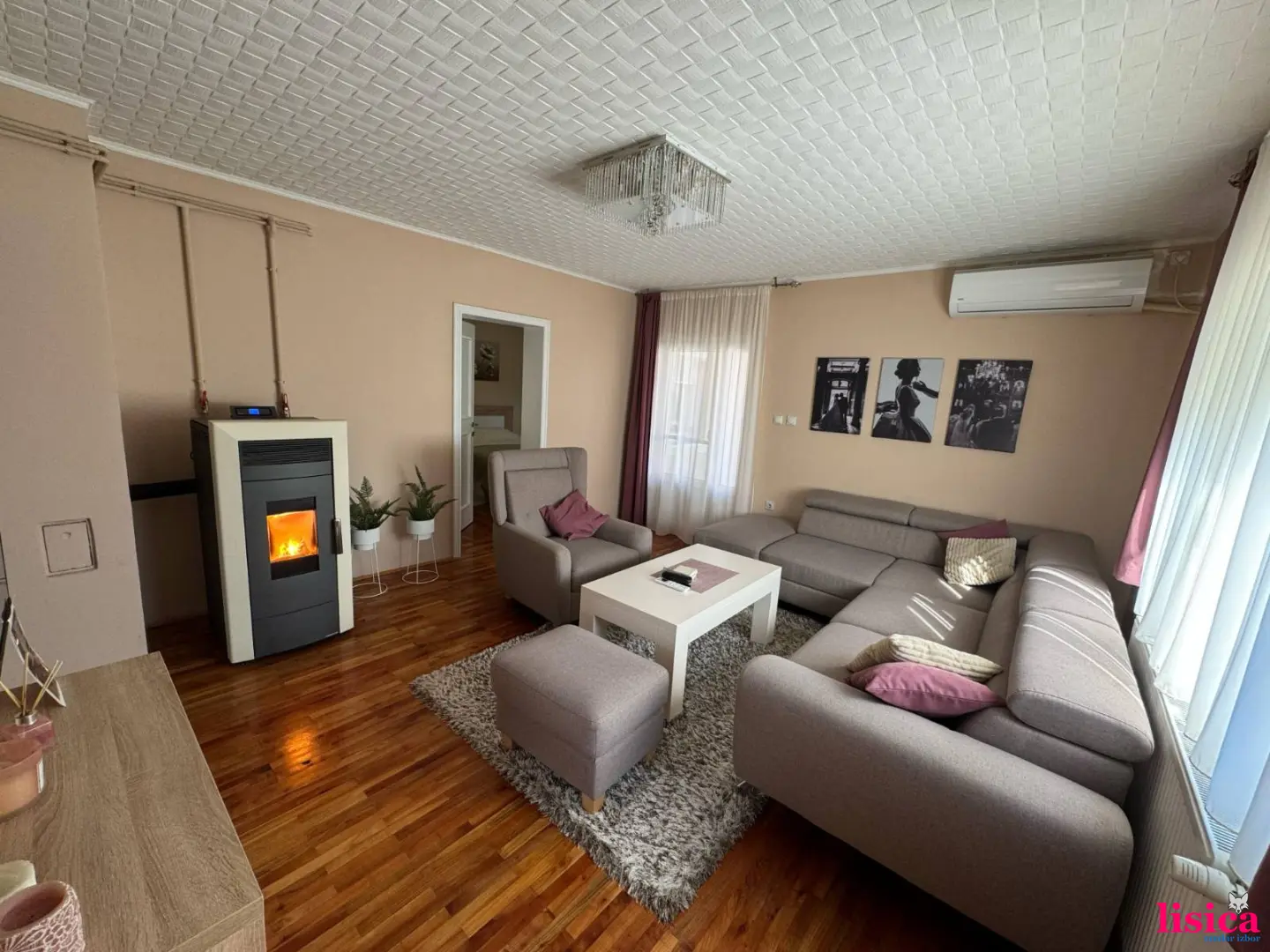 Porodična kuća u Kukujevcima, 129 km na 17.2 ara placa. Tri spavaće sobe, dva kupatila, kuhinja sa trpezarijom, dnevna soba i ostava. Grejanje etažno na pelet, inverter klima i mogućnost priključenja na gas. Parket u celoj kući. Prodaje se sa nameštajem i tehnikom. Veliko dvorište i bašta.