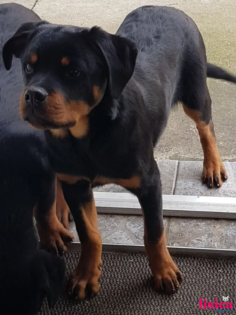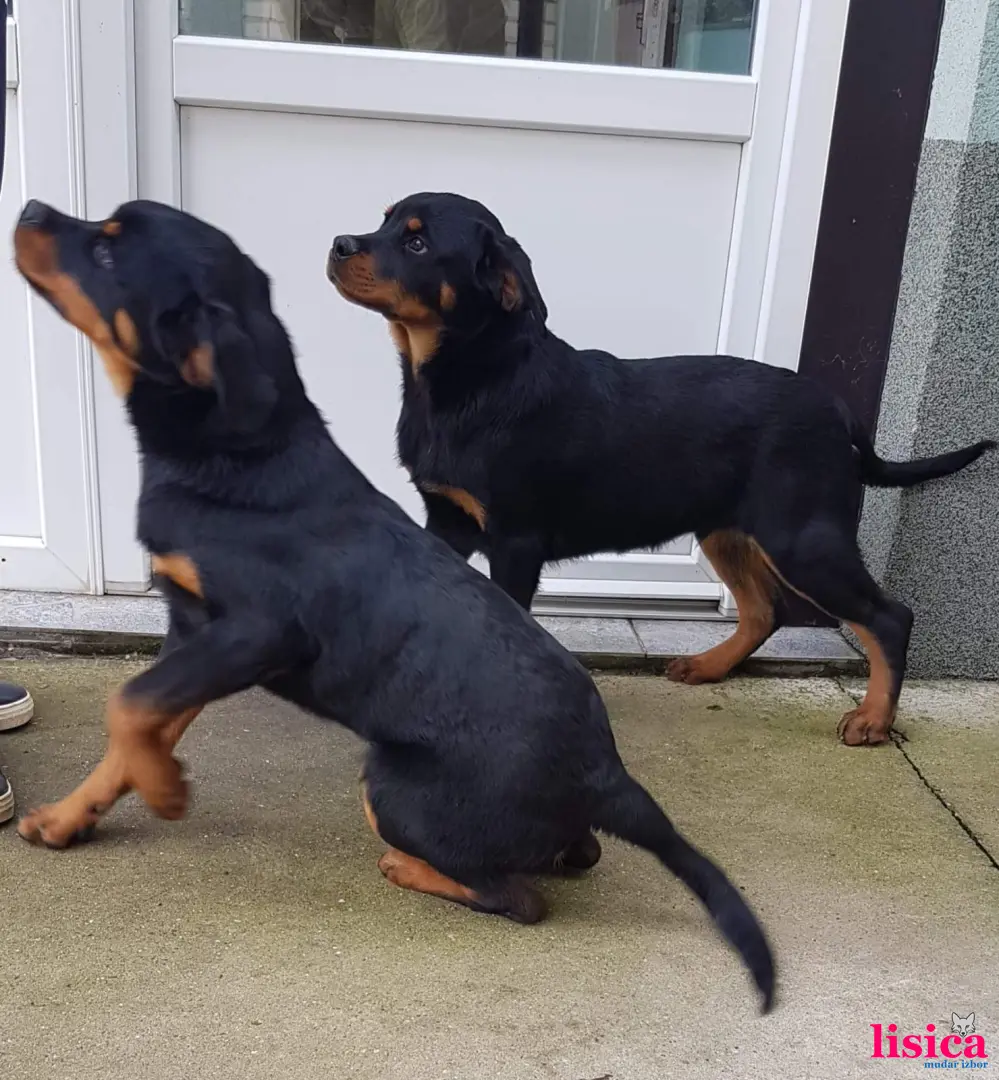 Rotvajeri mladi. U ponudi 4 ženke i 3 mužijaka sarosti od 6 meseci. Oštenjeni 24.05.2025. Majka: CARLA VON HAUS TOŠIĆ. Otac: HOSS PINK HOUSE BEOGRAD. Vakcinisani i revakcina ja primljena. Očiščeni od parazita,