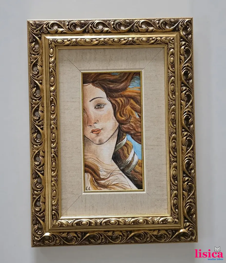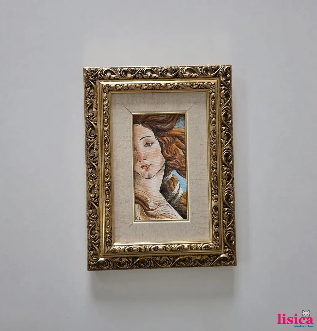 Slika Venera, tehnika akril na platnu. Minijatura. Prelepo umetničko delo. Slika je uramljena u jako lep ram, dimenzije slike sa ramom 38 x 28. Privatna kolekcija.