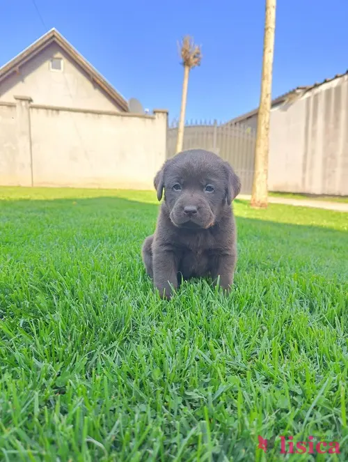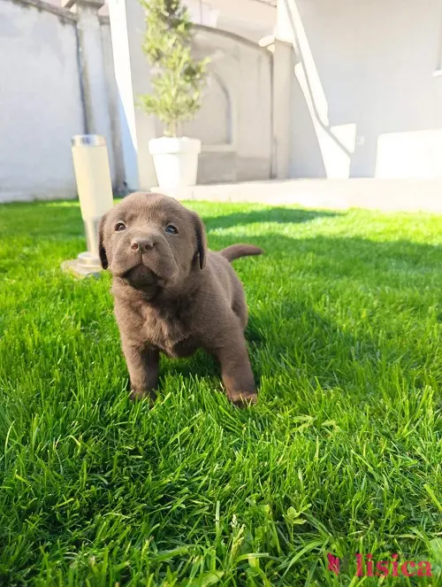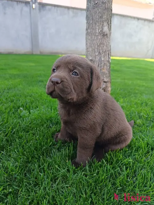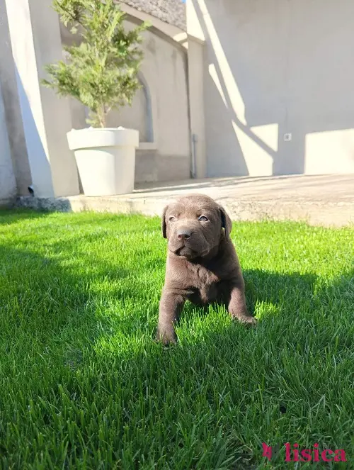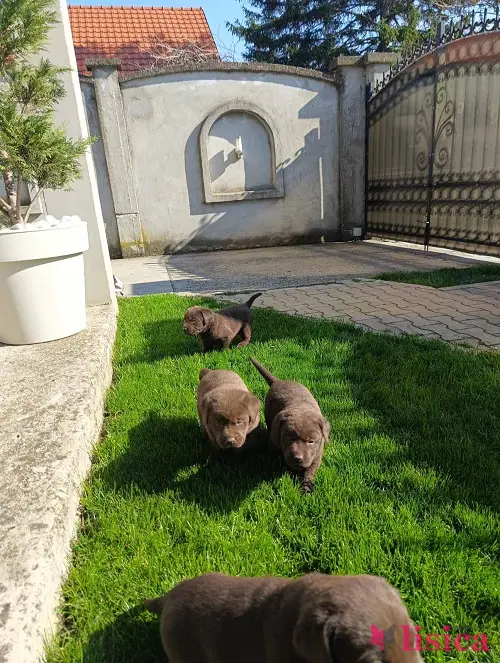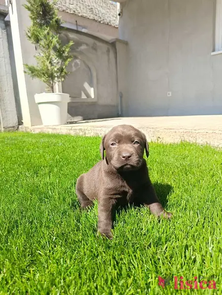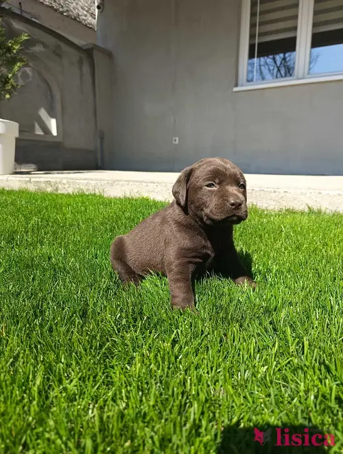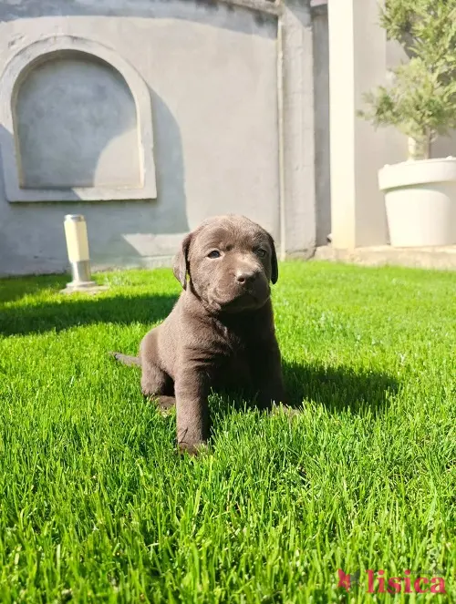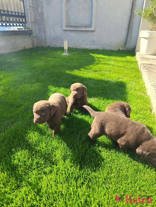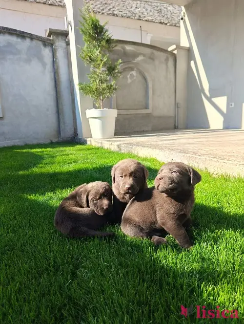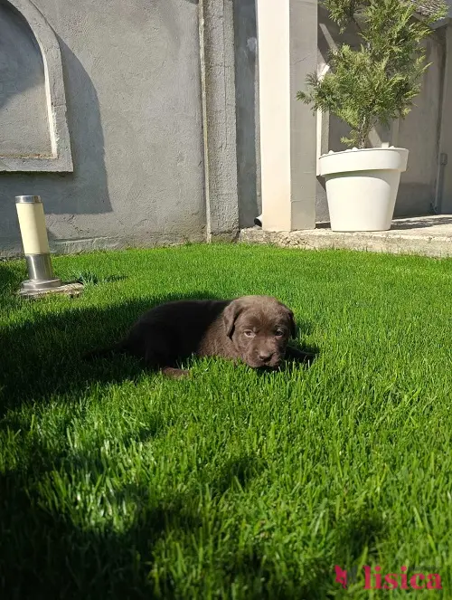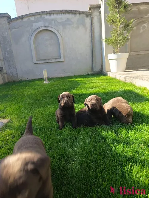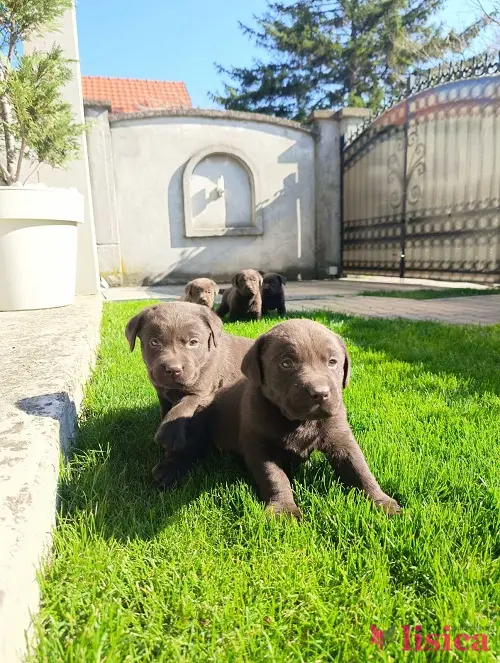 Štenci čokoladnog labradora stari mesec dana, veseli i razigrani.