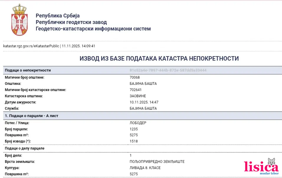 Na prodaju parcela od 52 ara, u Nacionalnom parku Tara, selo Zaovine. Parcela se nalazi u predelu izuzetnih prirodnih odlika, na izuzetnoj lokaciji. Naime, ova parcela izlazi na asfaltni put oko Zaovinskog jezera. Nalazi se u neposrednoj blizini administratvnog centra sela (crkve, mesne kancelarije i priključaka za vodu i struju). Parcela se u katastru vodi kao livada, ali je obrasla niskim četinarskim rastinjem. Odlikuje se prirodnim padom od asfaltnog puta ka Zaovinskom jezeru. Sa obe strane parcele, gledano niz padinu, nalaze se planinski potočići, tako da je ujedno bogata i vodom. Kao takva predstavlja savršeno mesto za ulaganje, za sve one sa vizijom. Za porodice koje tragaju za prirodnim rajem, duševnim mirom i shvataju značaj neophodnosti konekcije sa prirodom, ovo je savršeno mesto za vikendicu ili kuću. Ovakva prilika za sopstvenim parčetom zemlje u netaknutoj prirodi jednostavno se ne propušta. Parcela je u vlasništvu 1/1!