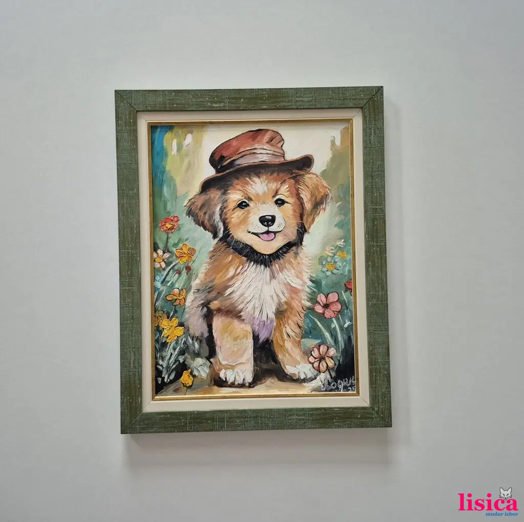 Ulje na lesonitu Gospodin pas, prelepo umetničko delo. Slika je uramljena u jako lep ram, dimenzije slike sa ramom 48 x 38. Privatna kolekcija.