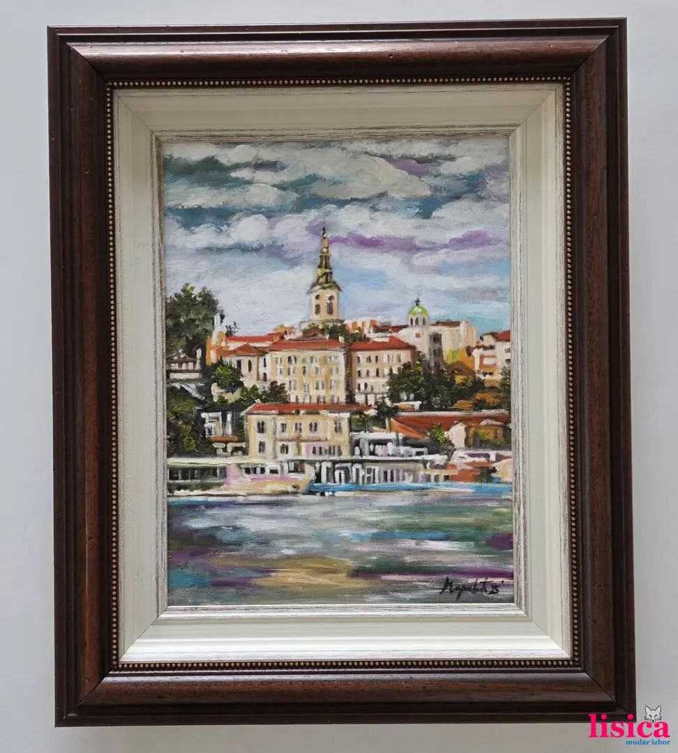 Ulje na platnu Beograd, pejzaž. Prelepo umetničko delo. Slika je uramljena u jako lep ram, dimenzije slike sa ramom 58 x 48. Privatna kolekcija.