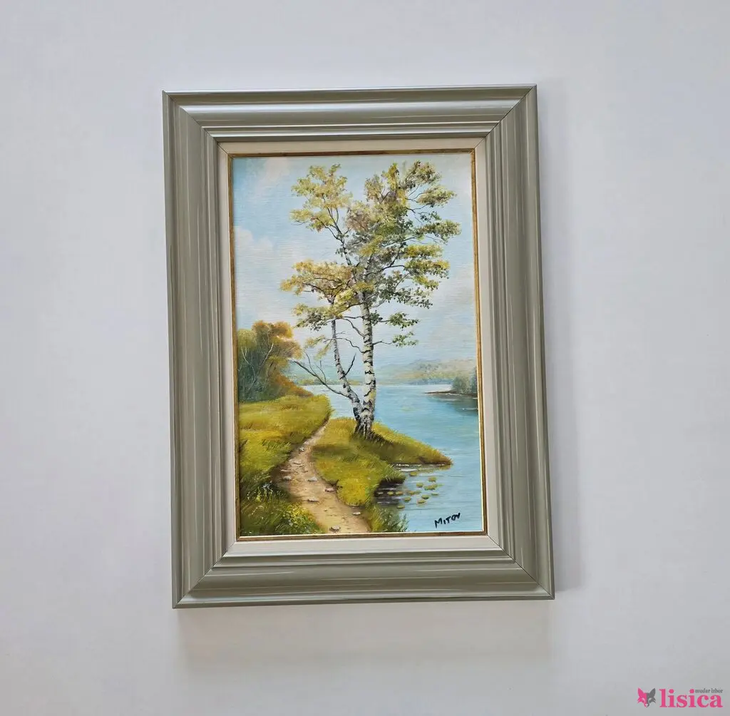 Ulje na platnu Breza na obali, prelepo umetničko delo. Slika je uramljena u jako lep ram, dimenzije slike sa ramom 60 x 44. Privatna kolekcija.