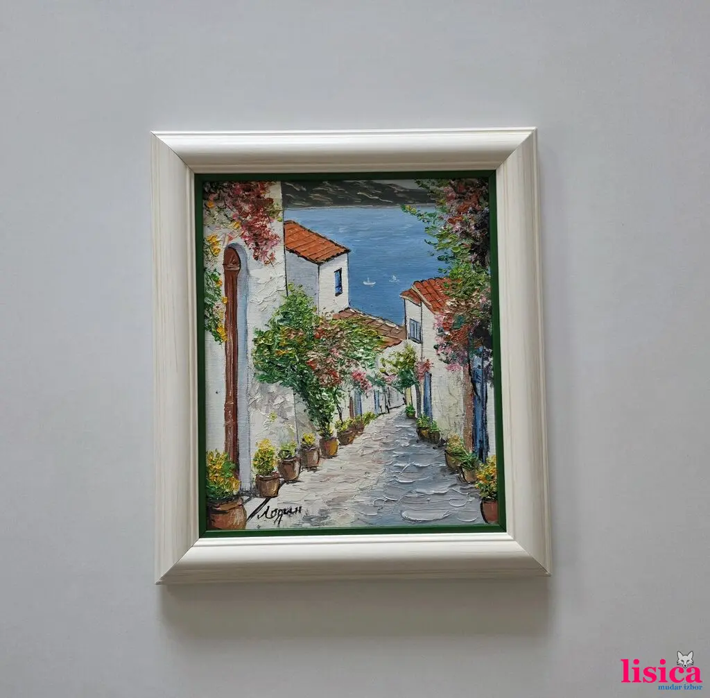 Ulje na platnu Mediteran, slika 20. Prelepo umetničko delo. Slika je uramljena u jako lep ram, dimenzije slike sa ramom 39 x 35. Privatna kolekcija.