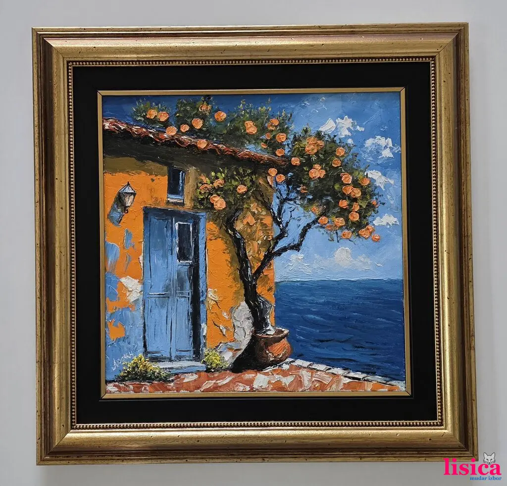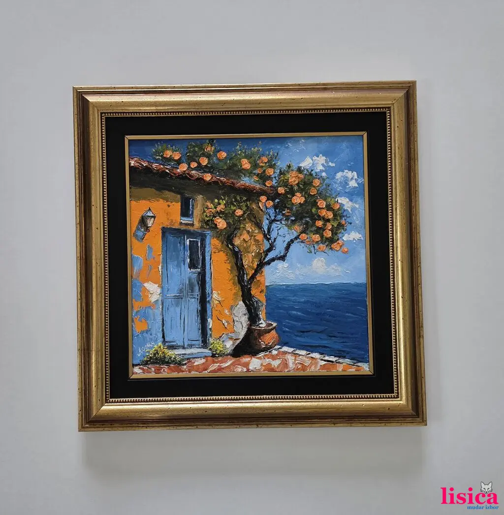 Ulje na platnu Mediterano 2, prelepo umetničko delo. Slika je uramljena u jako lep ram, dimenzije slike sa ramom 58 x 58. Privatna kolekcija.