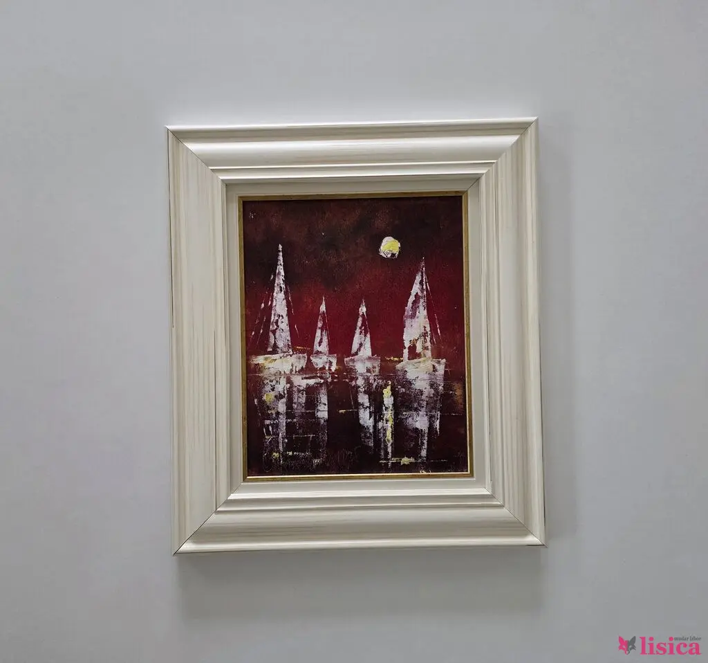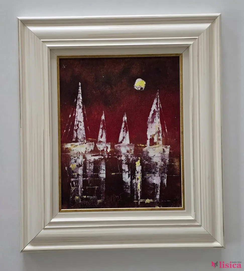 Ulje na platnu Noćni horizont, prelepo umetničko delo. Slika je uramljena u jako lep ram, dimenzije slike sa ramom 45 x 39. Privatna kolekcija.