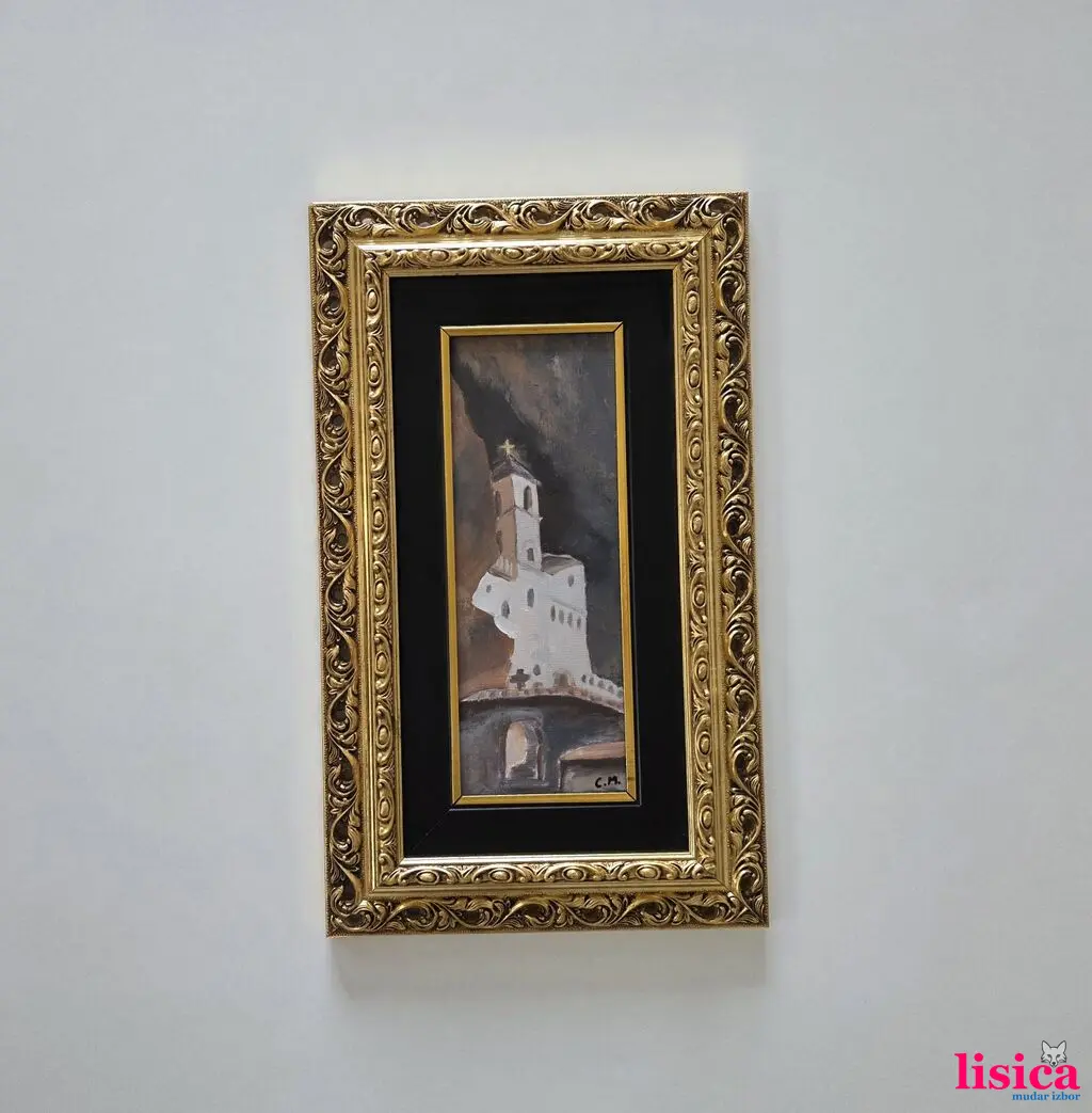 Ulje na platnu Ostrog, prelepo umetničko delo. Slika je uramljena u jako lep ram, dimenzije slike sa ramom 46 x 28. Privatna kolekcija.