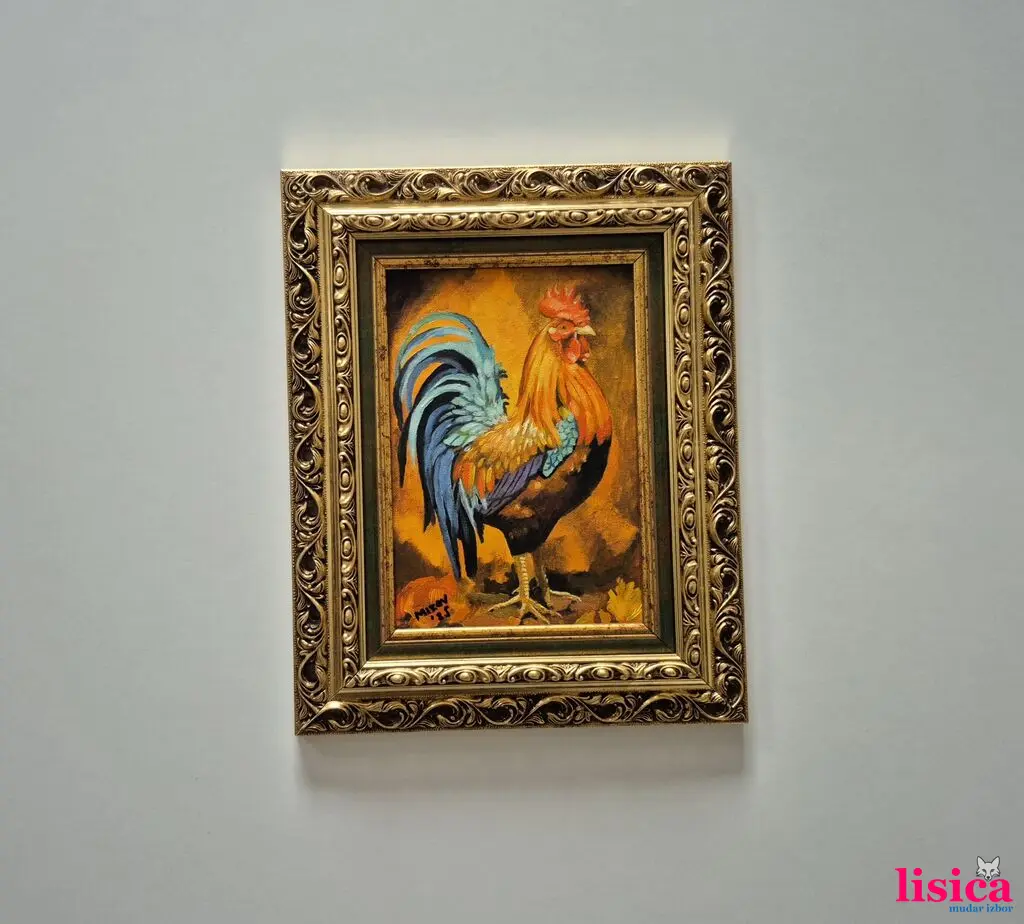 Ulje na platnu Portret petla, prelepo umetničko delo. Slika je uramljena u jako lep ram, dimenzije slike sa ramom 39 x 31. Privatna kolekcija.