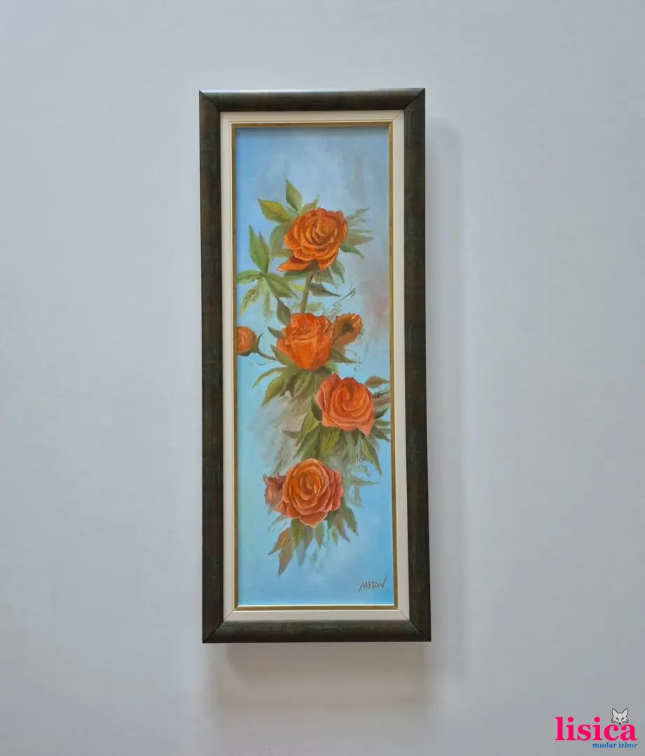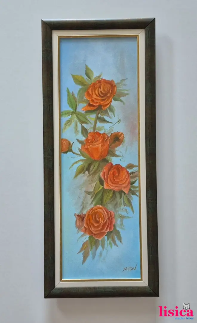 Ulje na platnu Velike ruže, prelepo umetničko delo. Slika je uramljena u jako lep ram, dimenzije slike sa ramom 68 x 28. Privatna kolekcija.