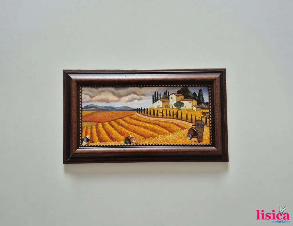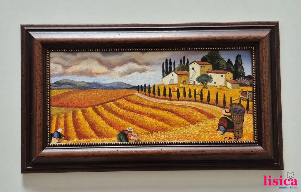 Ulje na platnu Žetva, prelepo umetničko delo. Slika je uramljena u jako lep ram, dimenzije slike sa ramom 48 x 28. Privatna kolekcija.