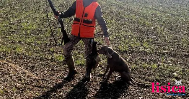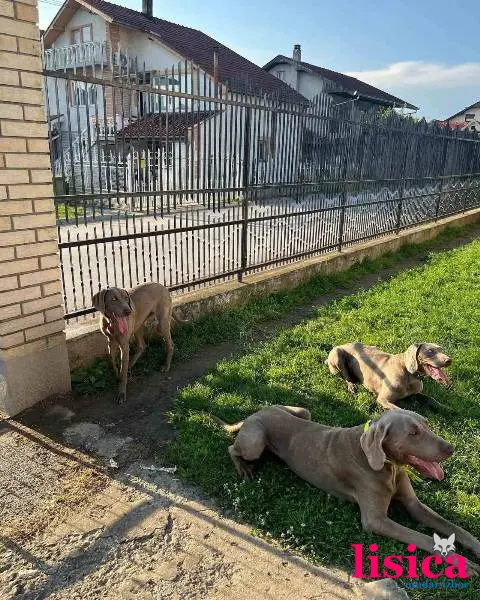 Ženka Vajmarskog ptičara stara 3 godine, od lovnih i izložbenih pasa. Radi fazana, prepelicu i zeca, markira i aportira.