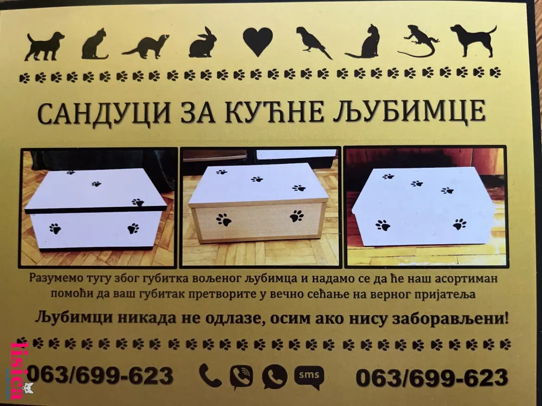 Sanduci za sahranjivanje kućnih ljubimaca, kuca i maca različitih dimenzija, unutrašnje mere: